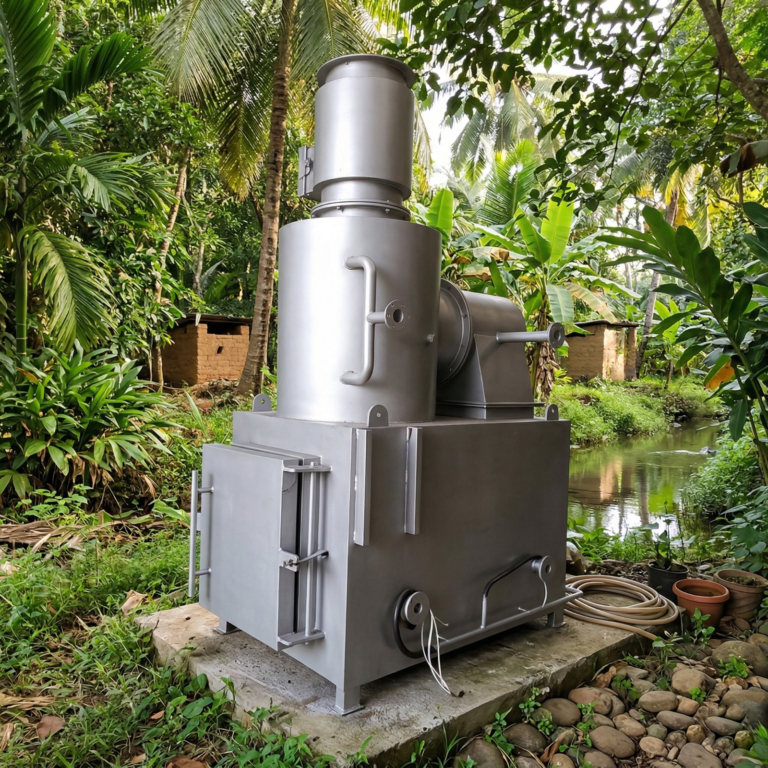 effciently disposes of various waste materials without releasing visible smoke. Ideal for eco-friendly waste management, it reduces air pollution and odor.